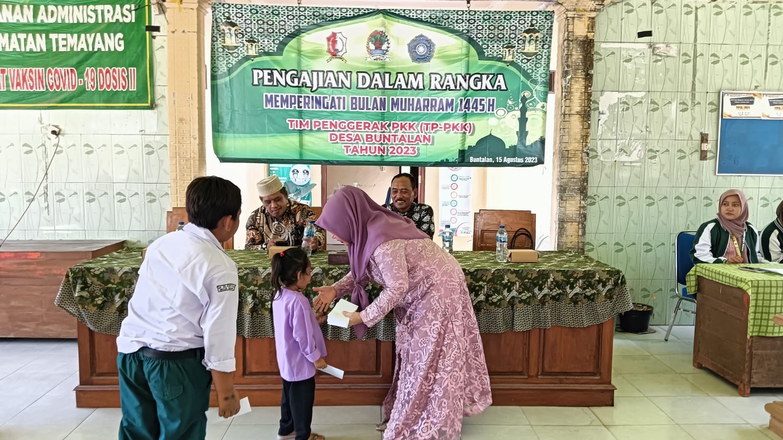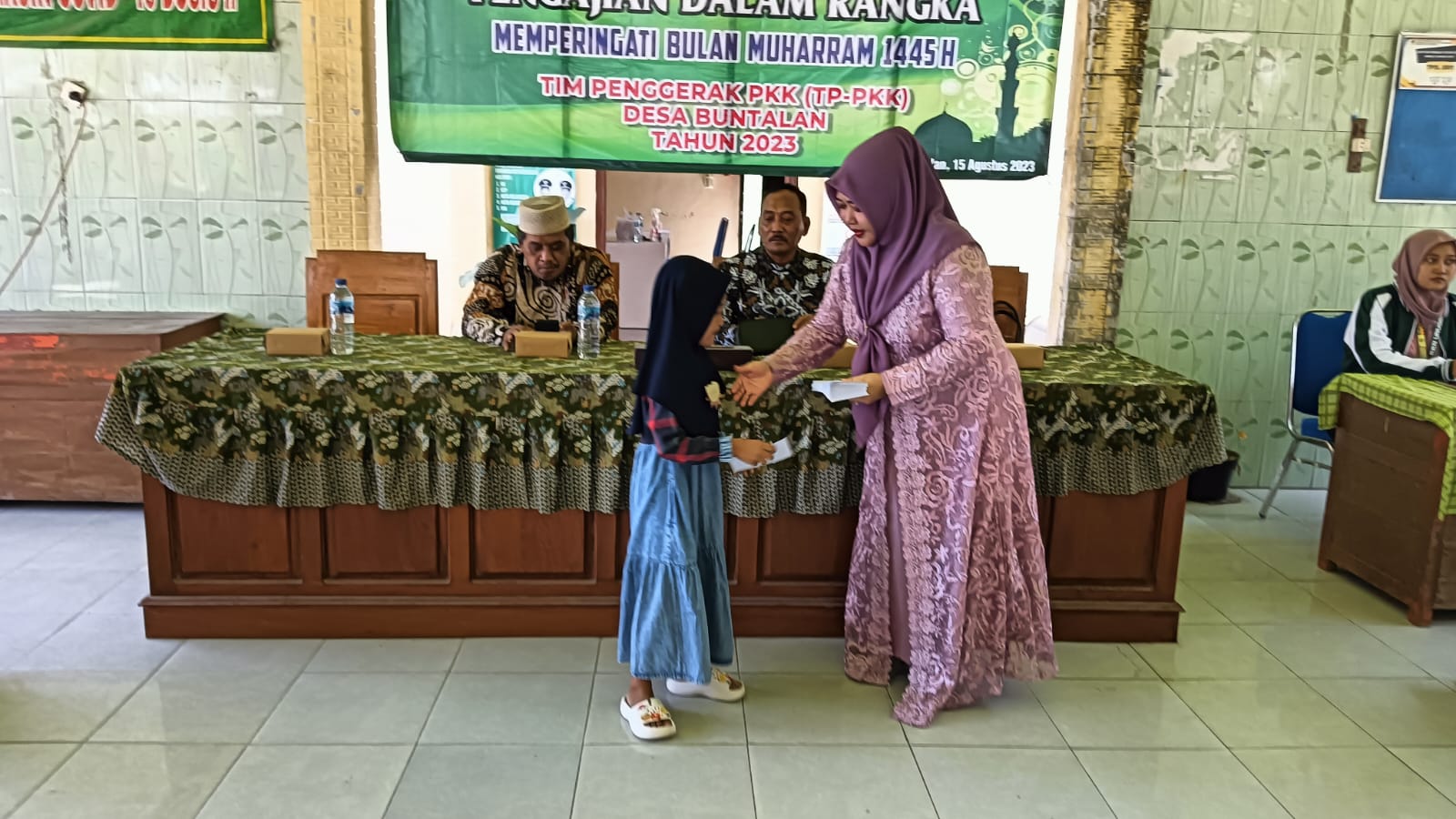 Hadir dalam acara tersebut, Kepala Desa Buntalan, Perangkat Desa, TP PKK Desa Buntalan, Tokoh Agama dan anak – anak yatim, piatu dan duafa. Pemerintah Desa Buntalan bersama TP PKK Desa Buntalan memberikan santunan bagi 180 anak yatim, piatu dan duafa se-desa Buntalan. Santunan ini diberikan langsung oleh Ketua TP PKK Desa Buntalan.